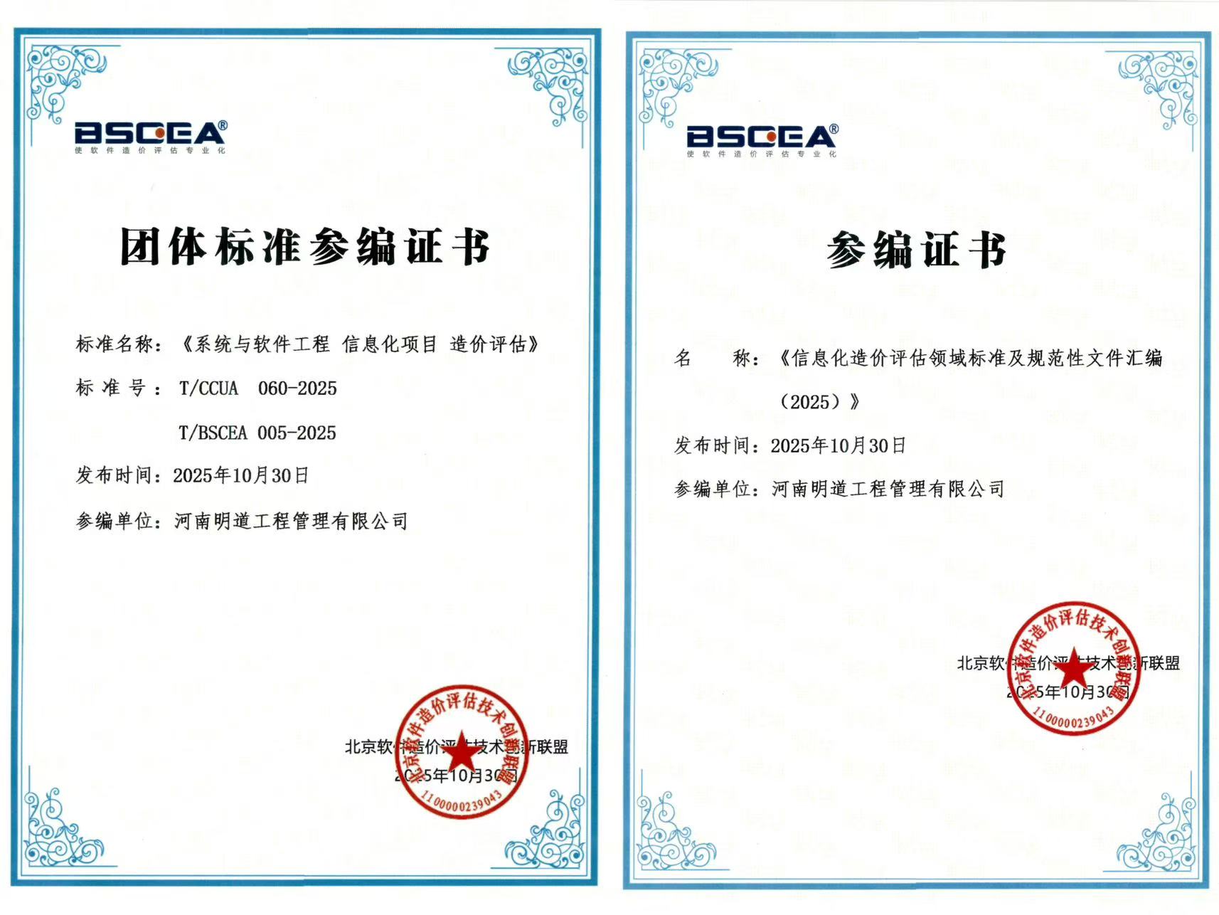 明道公司4名軟件工程造價(jià)師楊森、宋方舉、呂文龍、王俊鋒參與了上述標(biāo)準(zhǔn)研制、政策與案例匯編等工作,公司在信息化造價(jià)評(píng)估方面的積累與貢獻(xiàn),不僅提升了公司的核心競(jìng)爭(zhēng)力,更以實(shí)際行動(dòng)推動(dòng)了行業(yè)的規(guī)范化、專業(yè)化進(jìn)程,譜寫了守正創(chuàng)新、多措并舉的發(fā)展新篇章。